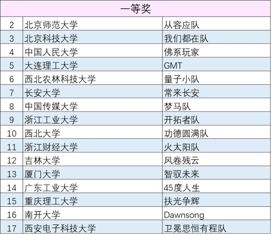获奖团队名单(部分)