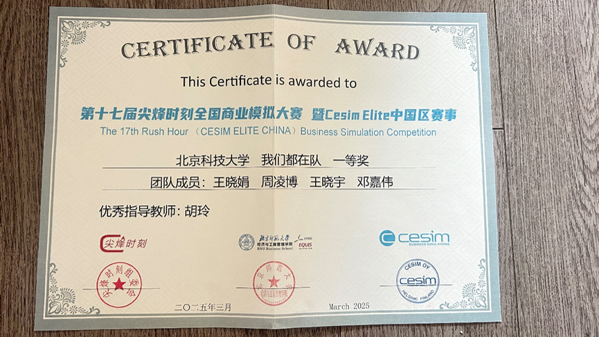 "我们都在队"的比赛征程虽已暂告一段落,但北科MBA学子的商业探索永不止步。这支队伍用行动证明:在数字化浪潮席卷全球的今天,商科人才既要精通理论模型,又要深谙市场应用;既要敢于在数据蓝海中劈波斩浪,也要善于在团队协作中凝聚共识。一路走来,“我们都在队”的成功离不开胡玲老师的辛勤指导,也离不开陈科科学长等前辈在决策模拟和商业案例等方面给予的诸多建议,更离不开经管学院的鼎力支持。